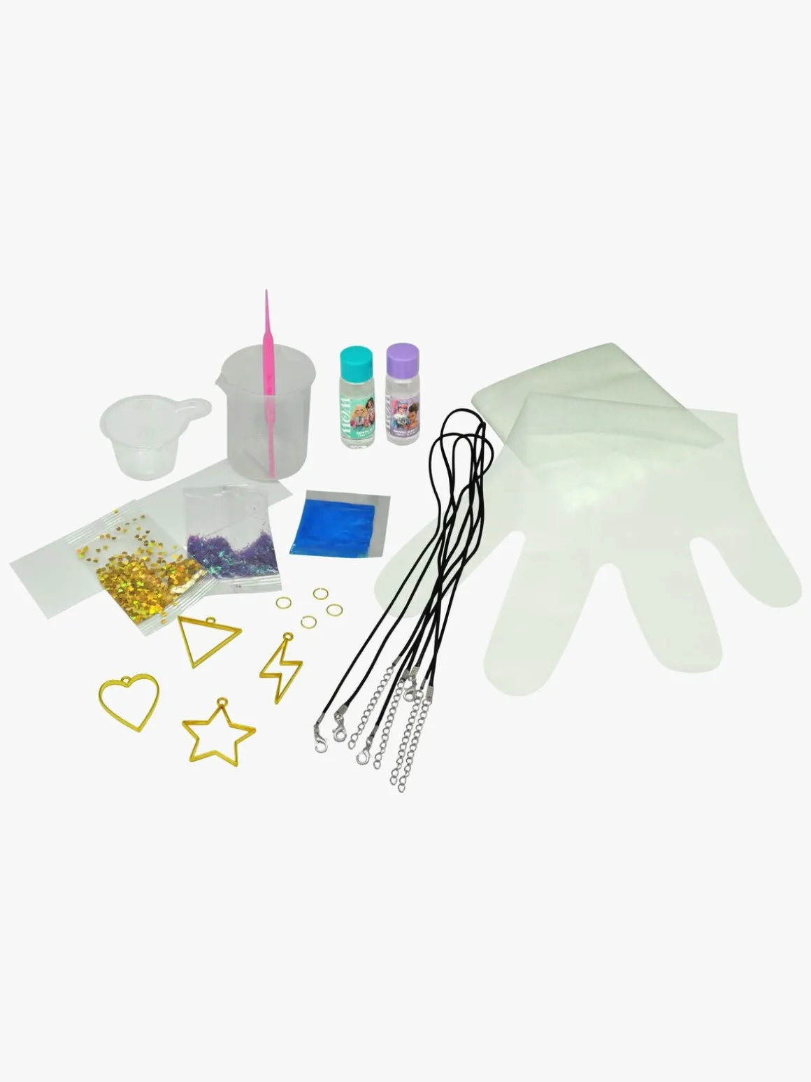 – Indeholder: handsker, resin, en blandekop, en blandepind, forme, farver, glitter og snor.